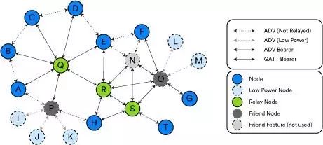 BLE Mesh网络的拓扑结构示例 图源:SIG