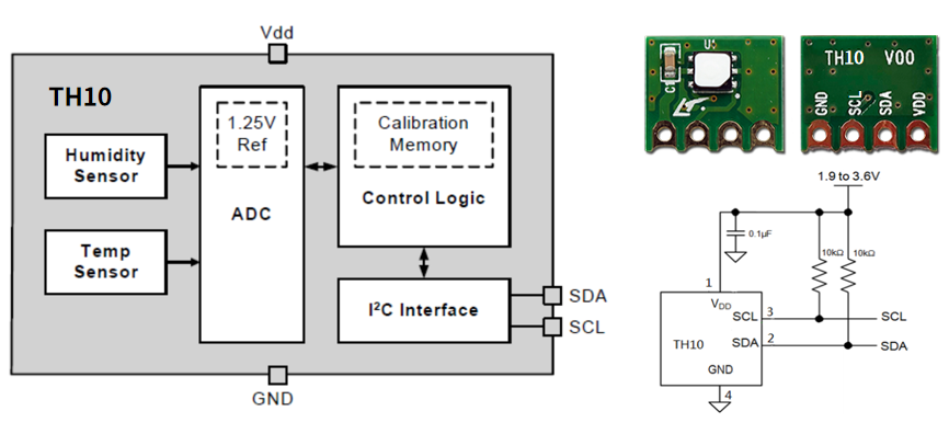 TH10的温度测量精度为±0.1°C,相对湿度测量精度为±1.5%RH。TH10支持两个用户可选的I2C从地址和高达400KHz的I2C通信速率。TH10的工作电压范围为2.4V-5V,能兼容多种不同的应用场景。